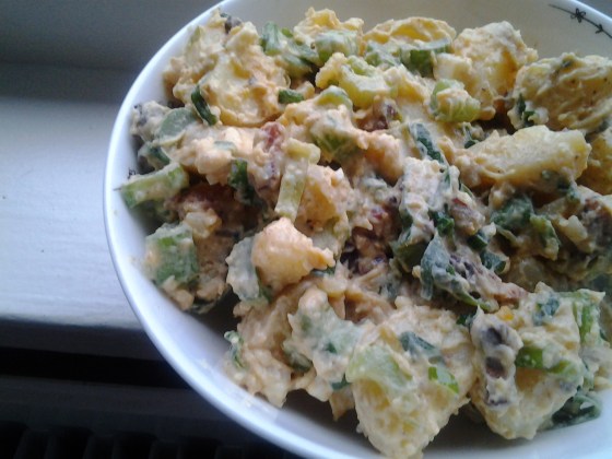 Potato Salad with leek, green onion, celery and bacon.