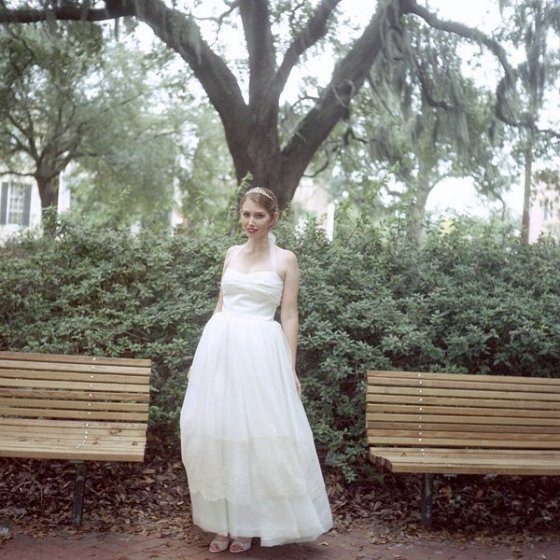 Wearing my mother’s veil that she wore when she married my father in 1979.