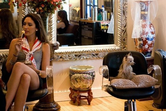 At Christopher’s Salon, having a sisterly moment while getting our hair done