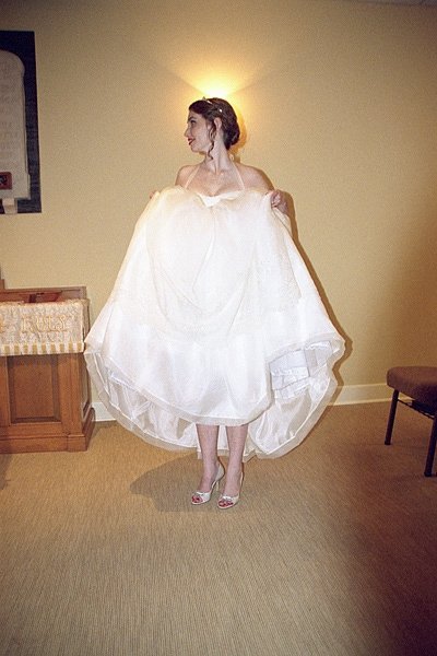 My mother made all of our dresses – now the finishing touches!