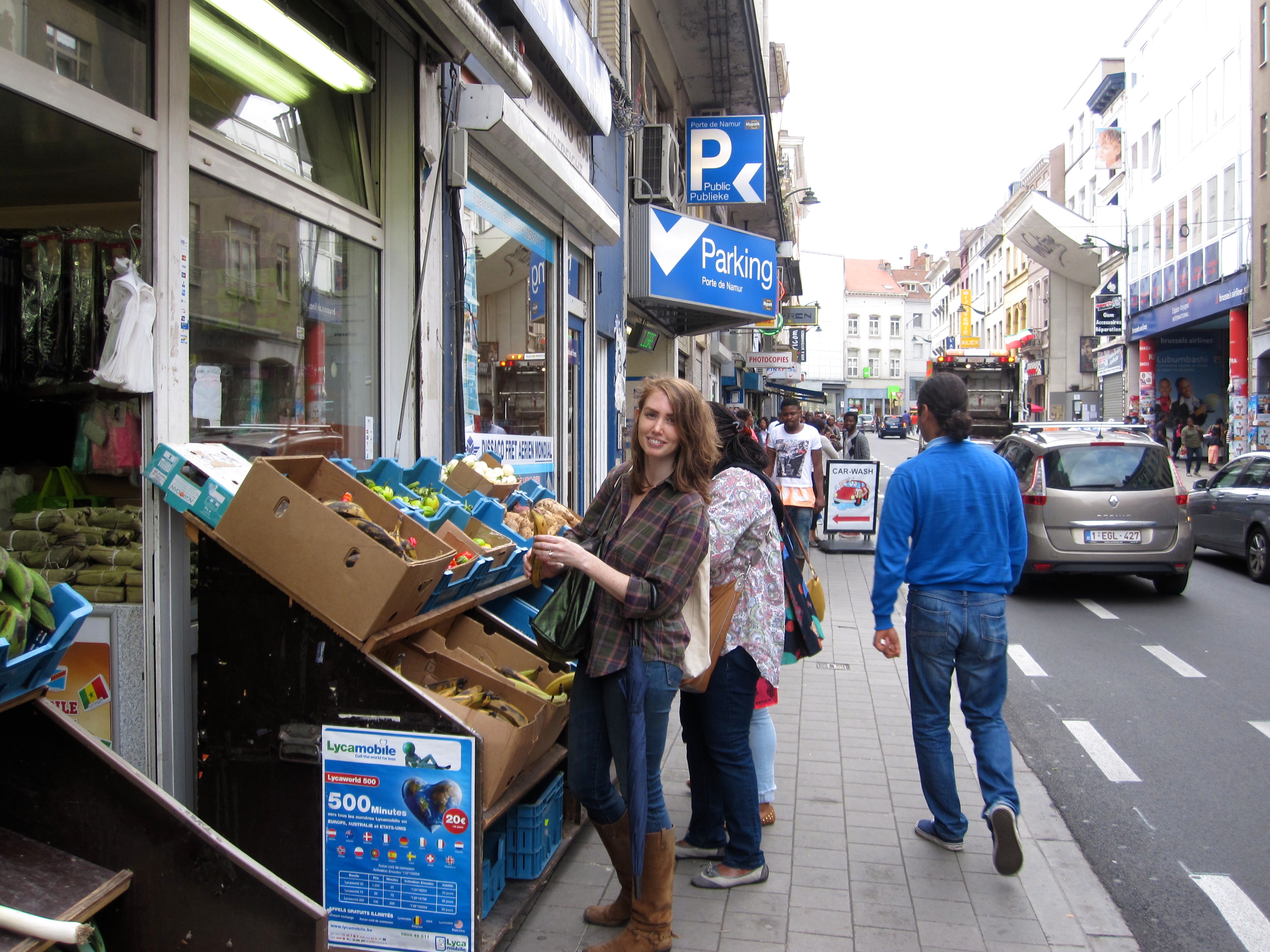 This summer I’ve been taking classes in Brussels, so I took the opportunity to do a bit of exploring. I had already been to Brussels a few times, but always to the Historic Center and other touristy places. I had heard about Matongé from a colleague and was curious to check it out! Luckily a classmate, Samy, was free after class to show me around – and thought it was funny I wanted to go and take photos. I especially wanted to get plantains, okra, and habanero peppers, because they’re difficult to find in Antwerp. Fresh produce was available in abundance with little markets located throughout Matongé! I bought some Congolese food to-go to try the next day.