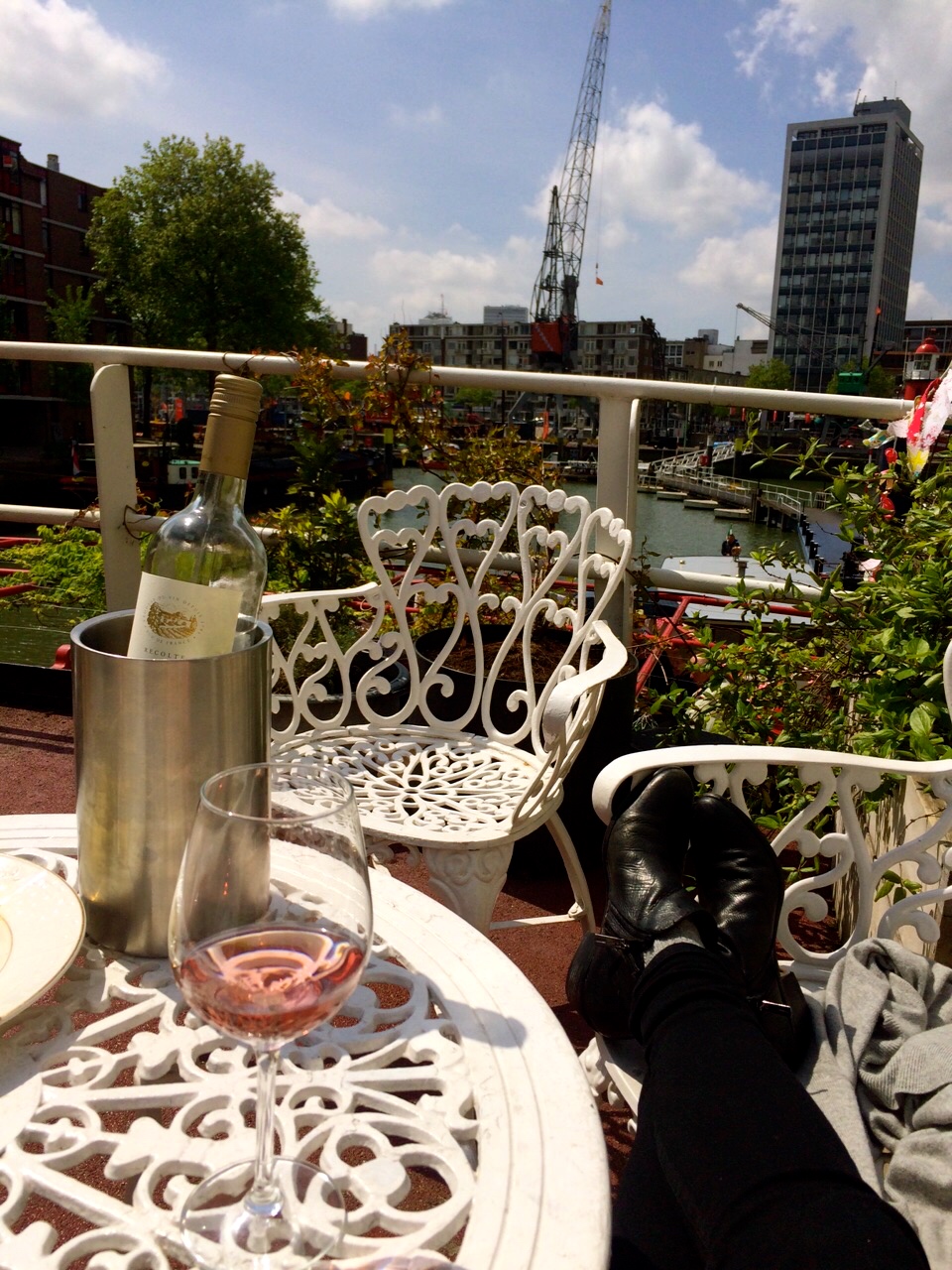 A few days after the party I met up with Christina in Rotterdam for a girls’ day. We started with the day with her husband at Hotel Bazar for a North African/Middle Eastern breakfast before heading off to explore the city on our bikes. Luckily we had beautiful sunny weather! We went first to the Markthal, a large food market with apartments and offices that just opened last year. Then we visited the Laurenskerk across the park. Christina had already been in Rotterdam a couple of days and suggested we head to Vessel 11, a Britsh pub on a boat, for a drink. After some rosé we biked over the Erasmus Bridge to the Wilhelmina Pier for lunch at Hotel New York, the former head office of the Holland America Line. Then we biked back over the bridge and biked through Het Park before having dinner at SET, a ramen restaurant, in Chinatown.